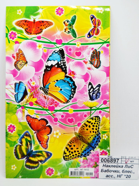 Наклейка ЛиС Бабочки, блестящие, в ассортименте *20