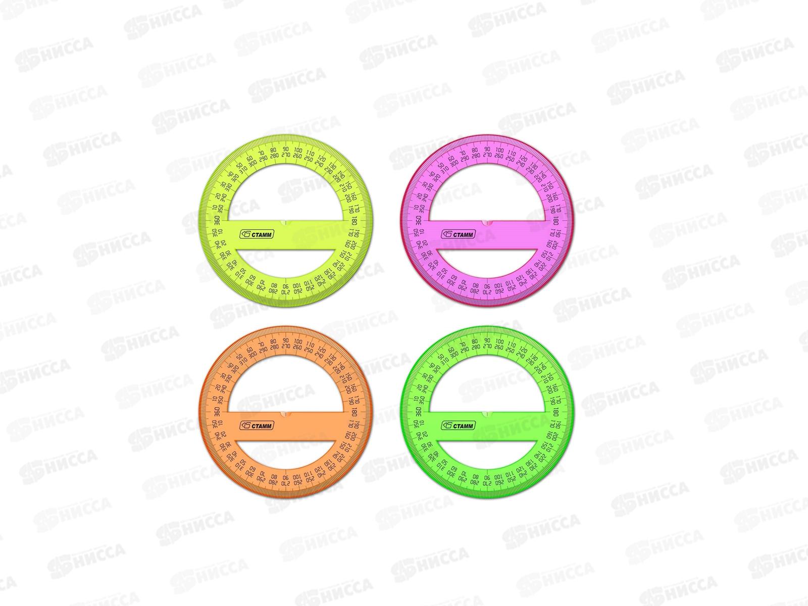 Транспортир 360градусов СТАММ 10см ассорти, флюоресцентный, ТР41 *20/420