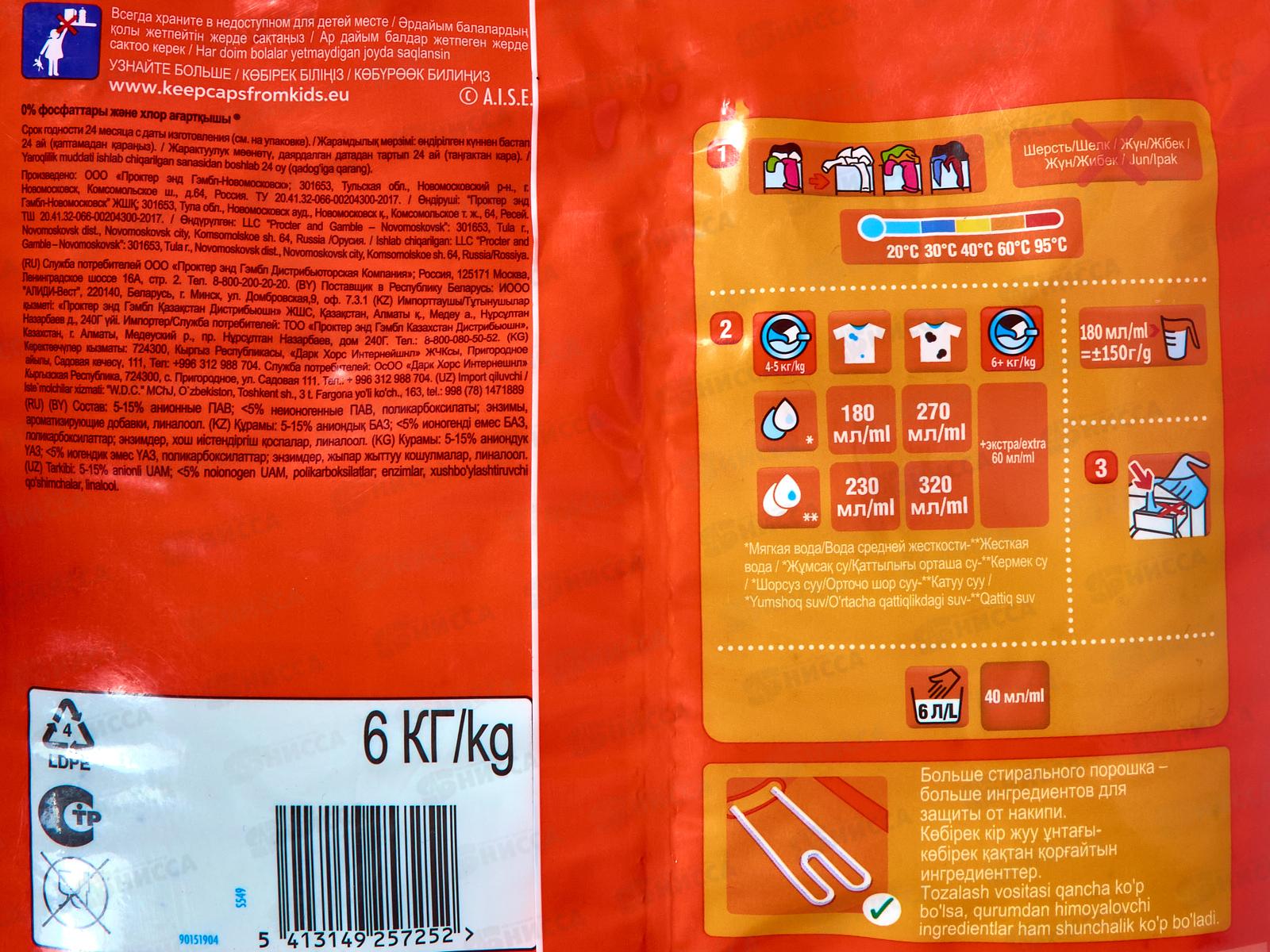Стиральный порошок Tide "Color" предназначен для стирки в стиральных машинах любого типа. Стиральный порошок содержит комплекс элементов, которые улучшают качество стирки и позволяют использовать небольшое количество порошка. Он эффективно отстирывает различные пятна, сохраняя яркие цвета вещей, а также позволяет добиваться великолепной белизны без кипячения. Содержит компоненты, помогающие защитить стиральную машину от накипи и известкового налета.