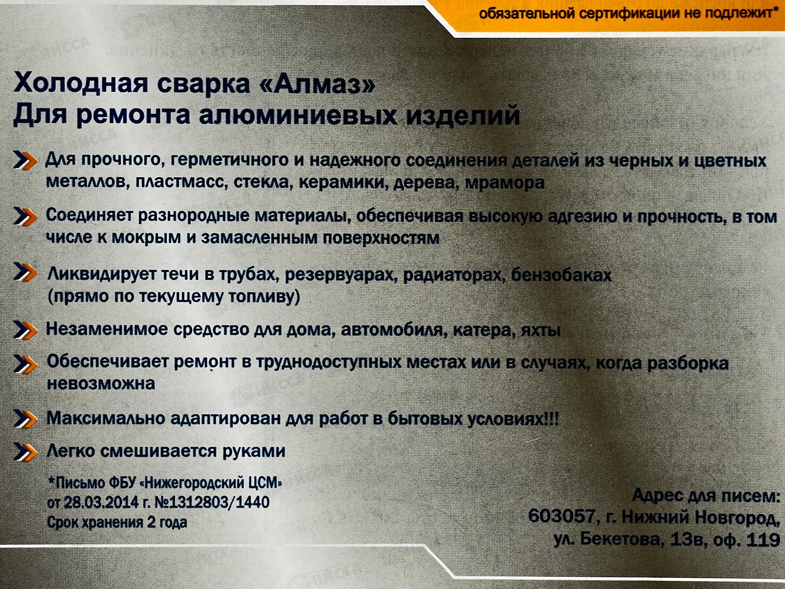 Клей холодная сварка Алмаз 30г (для алюминия изд) *36