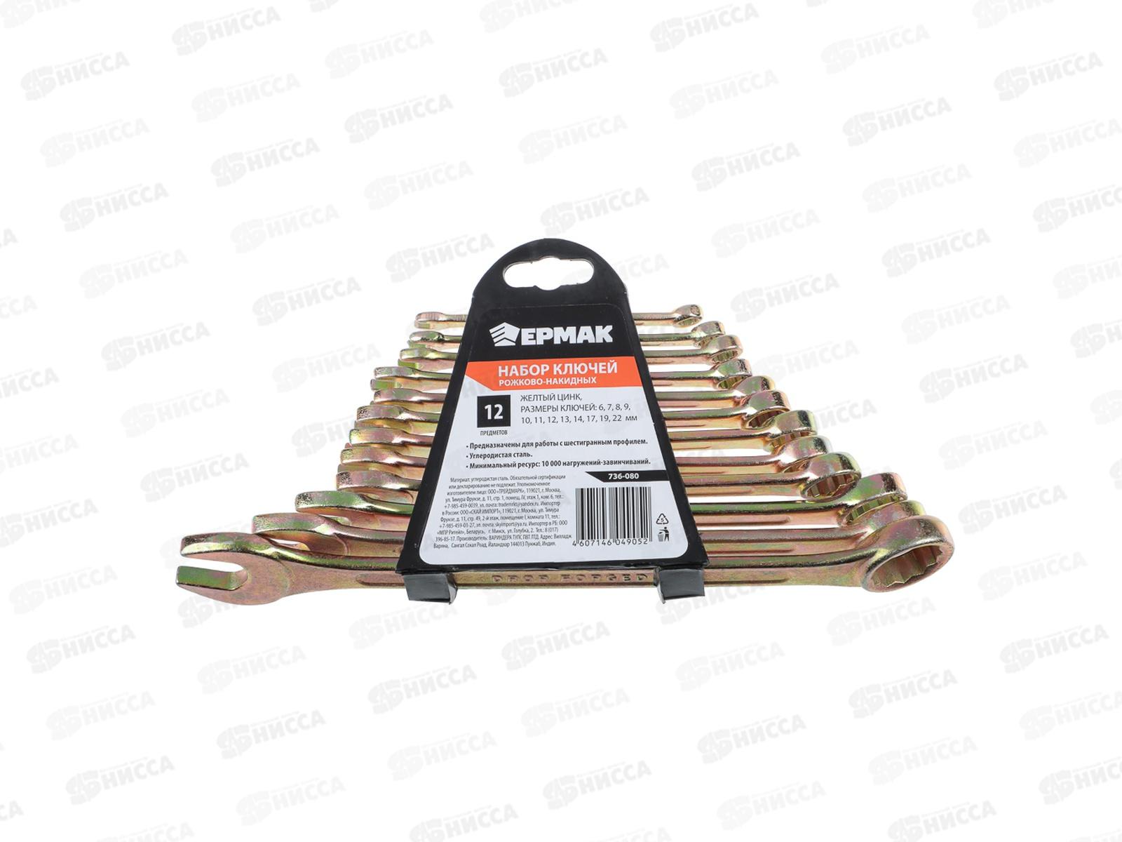 Набор ключей рожково-накидных 12предметов 6-22 мм (желтый цинк) г 736-080