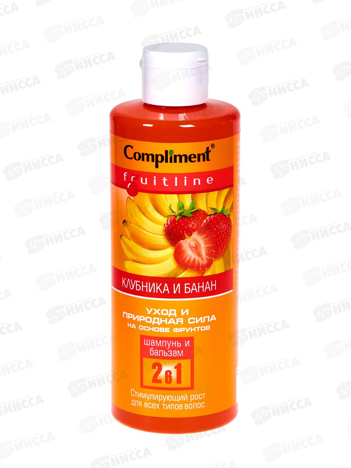 КОМПЛИМЕНТ шампунь+бальзам для волос 2в1 FruitLine Клубника/Банан 400мл *12