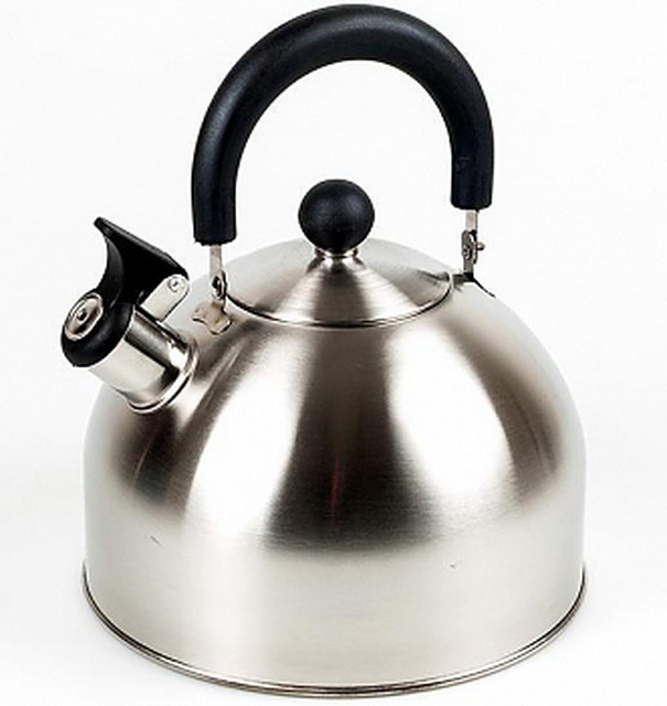 Чайник изготовлен из высококачественной нержавеющей стали. Бакелитовые ручки чайника практически не нагреваются, а курковый механизм позволяет легко поднимать насадку-свисток. Широкое цельнометаллическое однослойное дно распределяет тепло равномерно по всей поверхности, что обеспечивает быструю скорость закипания воды и устойчивость изделия. Подходит для всех видов плит, кроме индукционных.