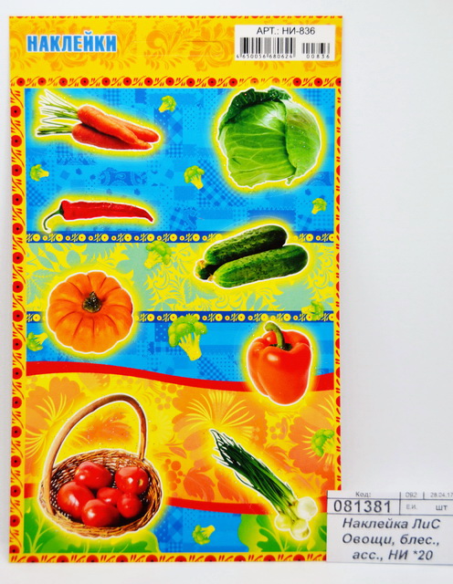 Наклейка ЛиС Овощи, блестящие, в ассортименте, НИ *20