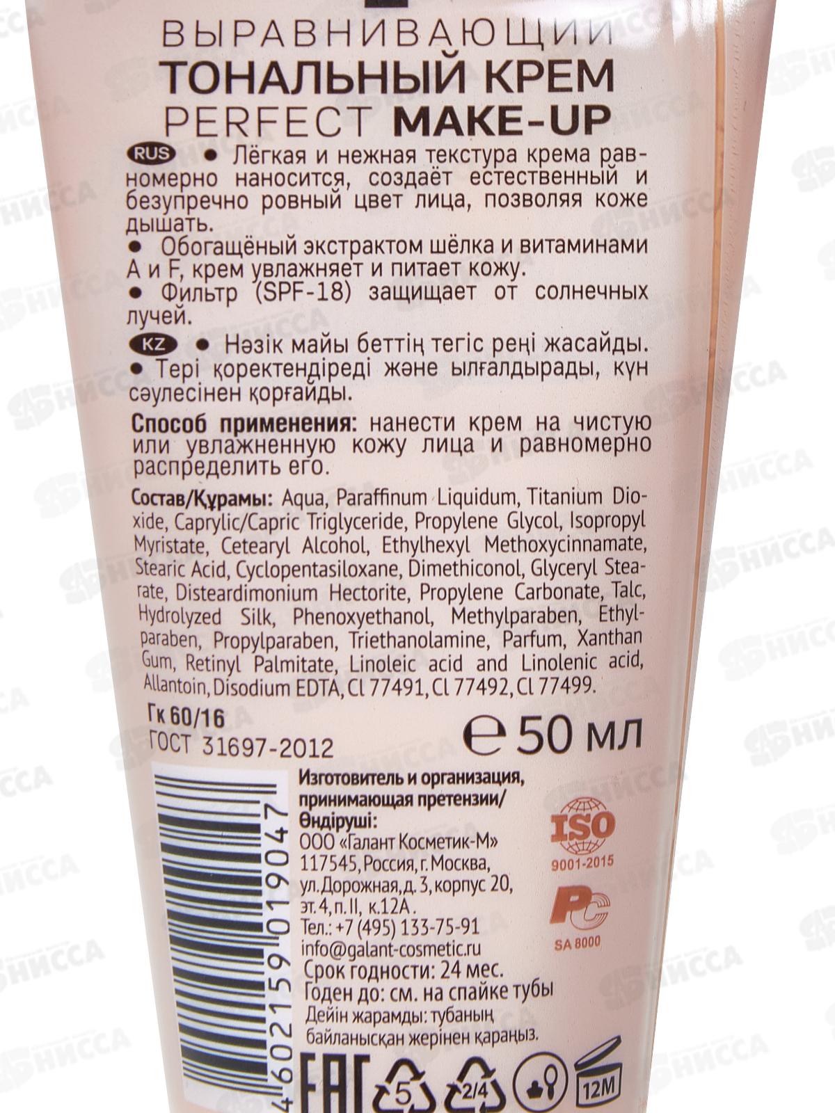 Тональный крем Galant visage Perfect make-up, тон № 1 (золотистый беж). Лёгкая и нежная текстура создаёт естественный цвет лица, скрывает недостатки кожи, при этом не забивая поры. Экстракт шёлка и витамины А и F увлажняют и питают кожу. Солнцезащитный фактор SPF 18 обеспечивает защиту от ультрафиолета и свободных радикалов, препятствуя преждевременному старению кожи.