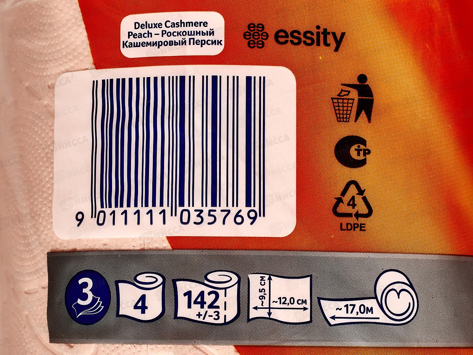 Бумага туалетная ЗЕВА Делюкс 3-х слойная Аромат персика 4шт *14