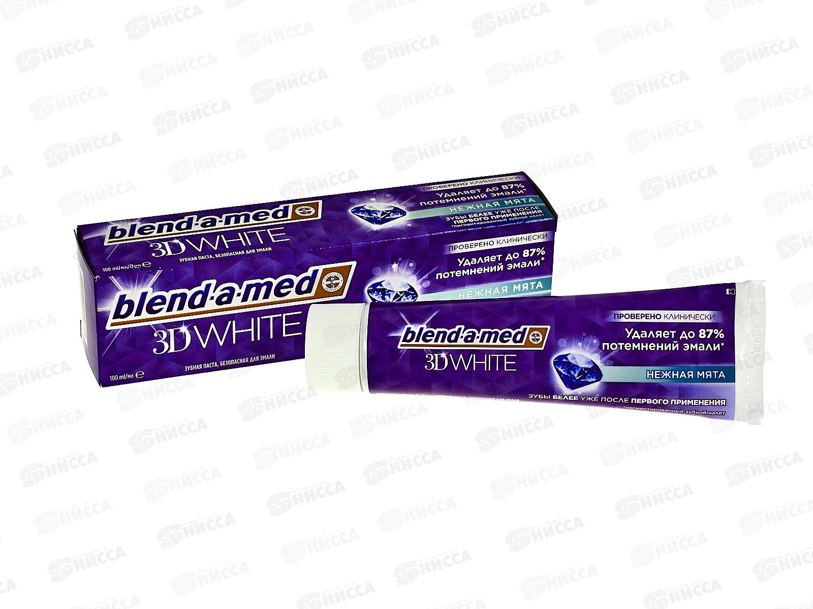 Зубная паста Blend-a-med 3D White Нежная Мята обладает тройным действием: отбеливает, укрепляет и защищает зубы. Безопасная для эмали формула мягко удаляет пигментированный зубной налет, делая улыбку красивой и белоснежной, дарит чувство свежести. Удаляет до 80% потемнения эмали (поверхностное потемнение эмали). Зубная паста — 3 преимущества: отбеливание, укрепление, защита от пигментированного налета. Зубная паста, безопасная для эмали. Нежный мятный вкус.
