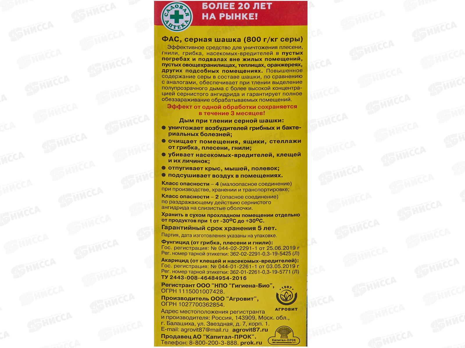 ФАС серная шашка от грызунов и для обработки погреба УНИВЕРСАЛ 300гр *28