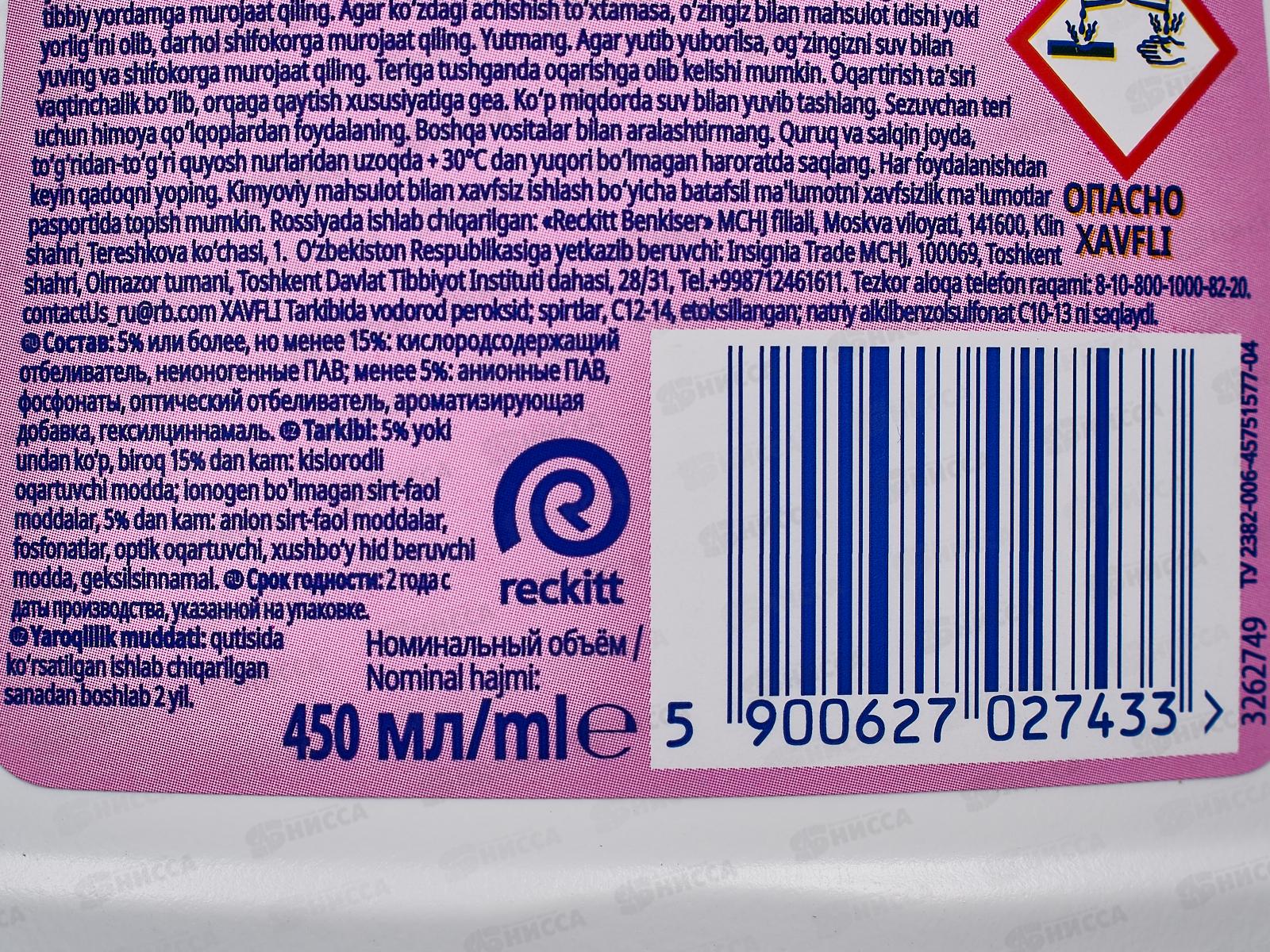 Тип товара: Пятновыводитель и отбеливатель для тканей