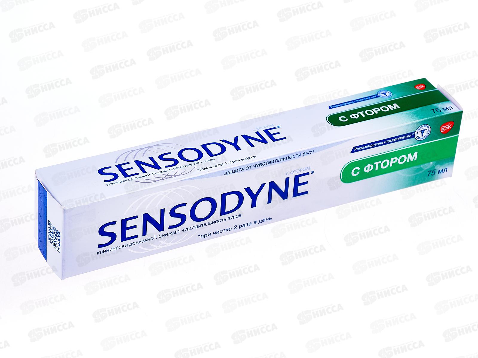 Зубная паста Sensodyne Защита от кариеса с фтором способствует уменьшению болезненные ощущения, вызванные чувствительностью зубов. Массовая доля фторида 0,145 % F? (1450 ppm). Содержит фтористый натрий. Состав: Вода, Сорбит, Гидратированный диоксид кремния, Глицерин, Нитрат калия, Ароматизатор, Ксантановая камедь, Кокамидопропилбетаин, Метилкокоилтаурат натрия, Сахарин натрия, фторид натрия, гидроксид натрия, Лимонен, CI 42090, CI 19140.