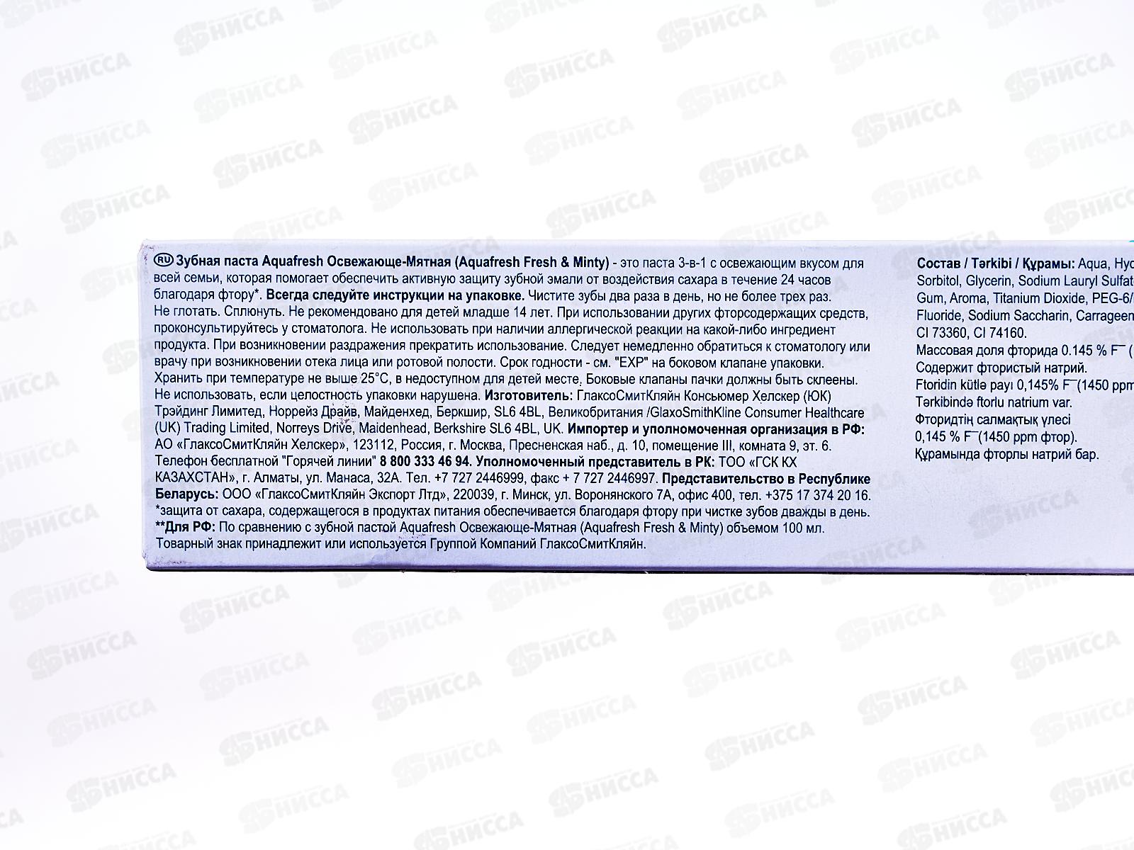 АКВАФРЕШ зубная паста 125мл 3в1 Освежающе-мятная *12