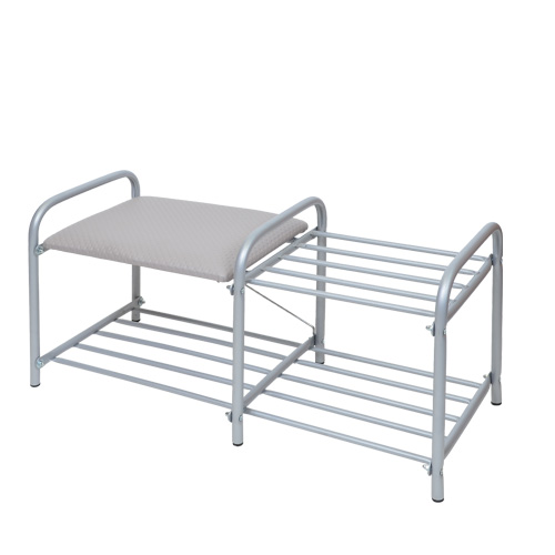 Этажерка для обуви "Люкс". Это 2-х ярусная, компактная и функциональная этажерка с мягким сиденьем. Материал сиденья прочный, устойчивый к истиранию и легкий в чистке. Полки под обувь сделаны из металлической трубы, сама этажерка из усиленного металлического каркаса, покрытие которого устойчиво к механическим воздействиям. Конструкция этажерки разборная. Пластиковые колпачки на ножках защищают поверхность пола от царапин. Допустимая нагрузка не более 100 кг.