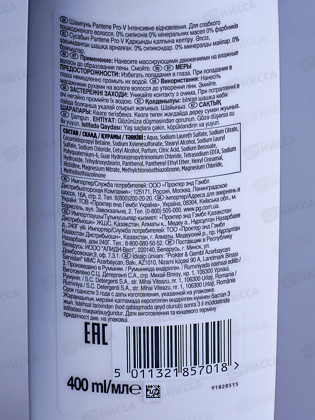 ПАНТИН шампунь 400мл Интенсивное восстановление волос *6