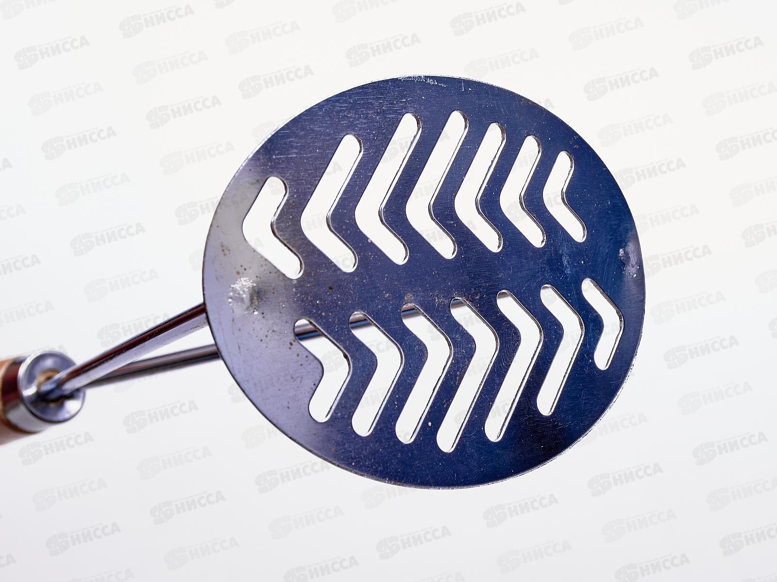Картофелемялка незаменима в приготовлении пюре. Модель имеет классическую форму-пресс с отверстиями. Такая конструкция обеспечивает равномерный нажим при надавливании, благодаря чему элементы толкушки не гнутся. Размер отверстий позволяет исключить попадание в готовое блюдо кусочков неразмятого картофеля.