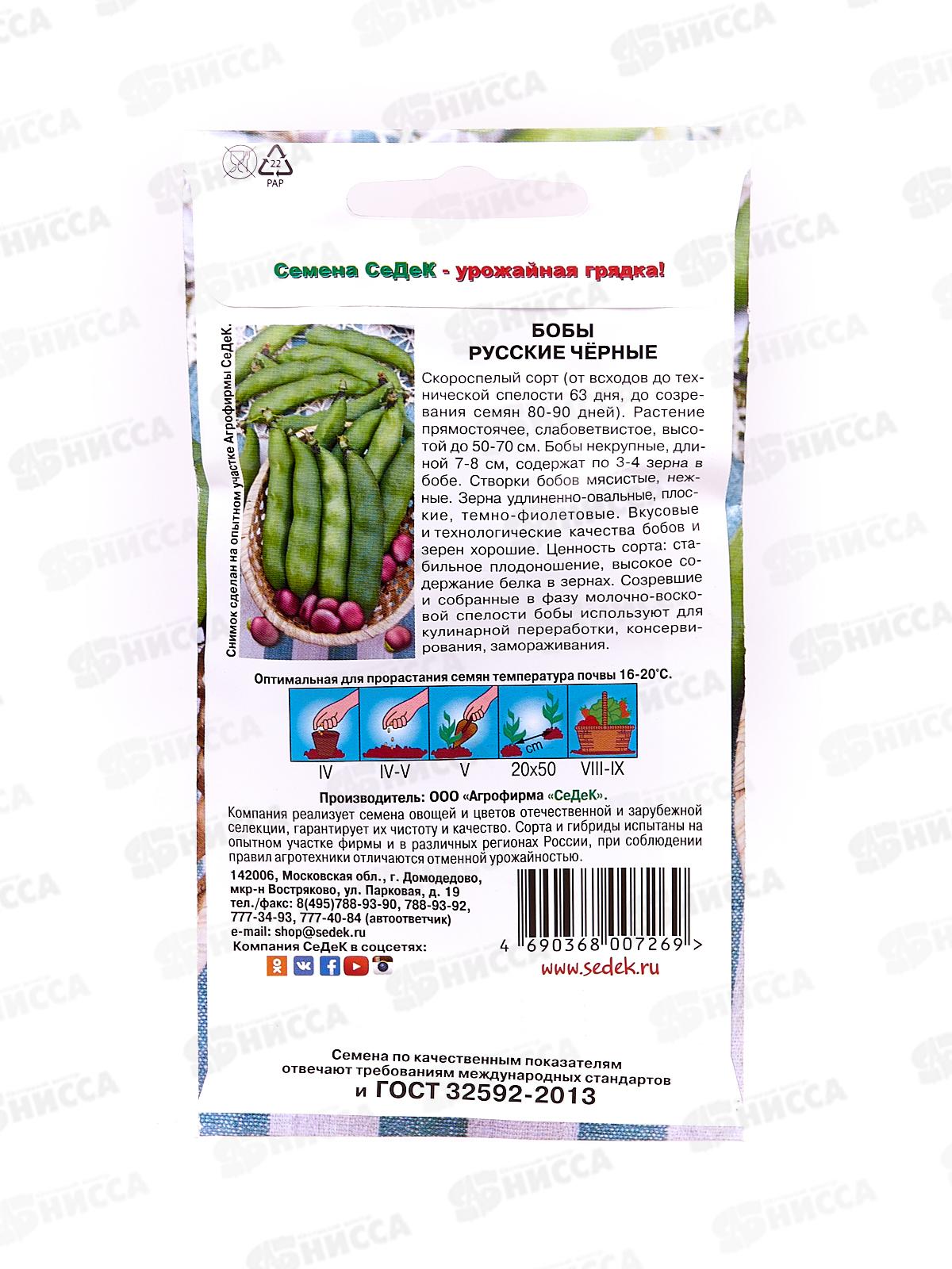 Скороспелый сорт (от всходов до технической спелости 63 дня, до созревания семян 80-90 дней). Растение прямостоячее, слабоветвистое, высотой до 50-70 см. Бобы некрупные, длиной 7-8 см, содержат по 3-4 зерна в бобе. Створки бобов мясистые, нежные. Зерна удлиненно-овальные, плоские, темно-фиолетовые. Вкусовые и технологические качества бобов и зерен хорошие. Ценность сорта: стабильное плодоношение, высокое содержание белка в зернах. Созревшие и собранные в фазу молочно-восковой спелости бобы используют для кулинарной переработки, консервирования, замораживания.