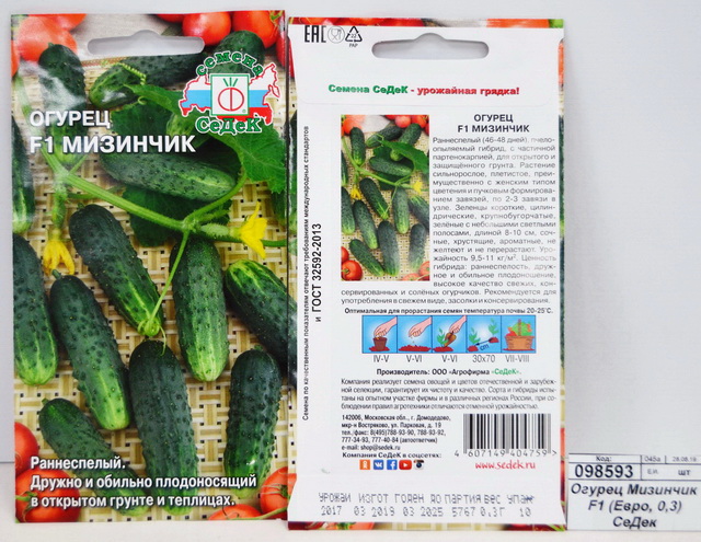 Раннеспелый (46-48 дней), пчелоопыляемый гибрид, с частичной партенокарпией, для открытого и защищённого грунта. Растение сильнорослое, плетистое, преимущественно с женским типом цветения и пучковым формированием завязей, по 2-3 завязи в узле. Зеленцы короткие, цилиндрические, крупнобугорчатые, зелёные с небольшими светлыми полосами, длиной 8-10 см, сочные, хрустящие, ароматные, не желтеют и не перерастают. Урожайность 9,5-11 кг/м2. Ценность гибрида: раннеспелость, дружное и обильное плодоношение, высокое качество свежих, консервированных и солёных огурчиков. Рекомендуется для употребления в свежем виде, засолки и консервирования.