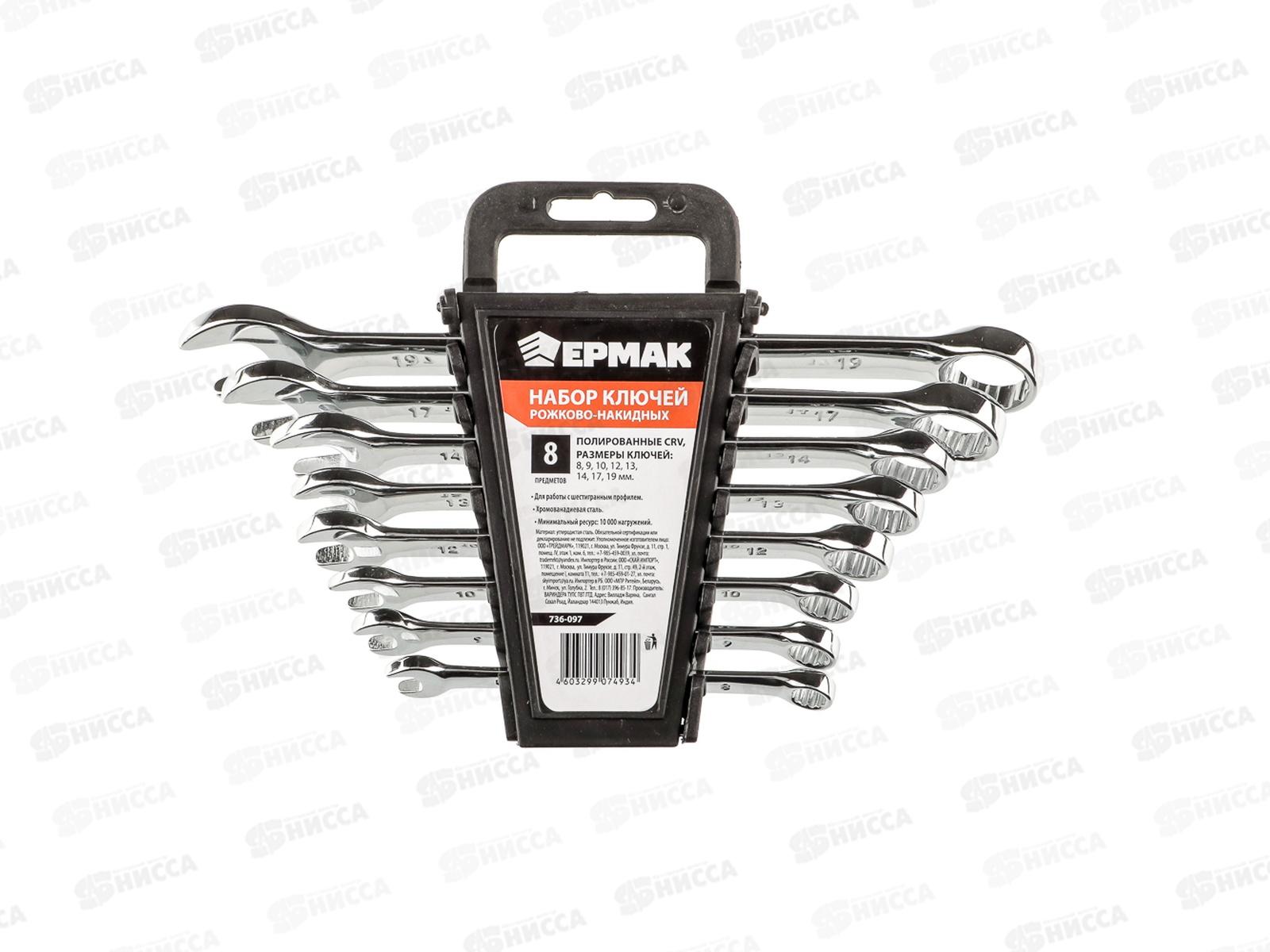 Набор ключей рожково-накидных 8 предметов пластиковый холдер полированные CRV 8-19мм 736-097 г