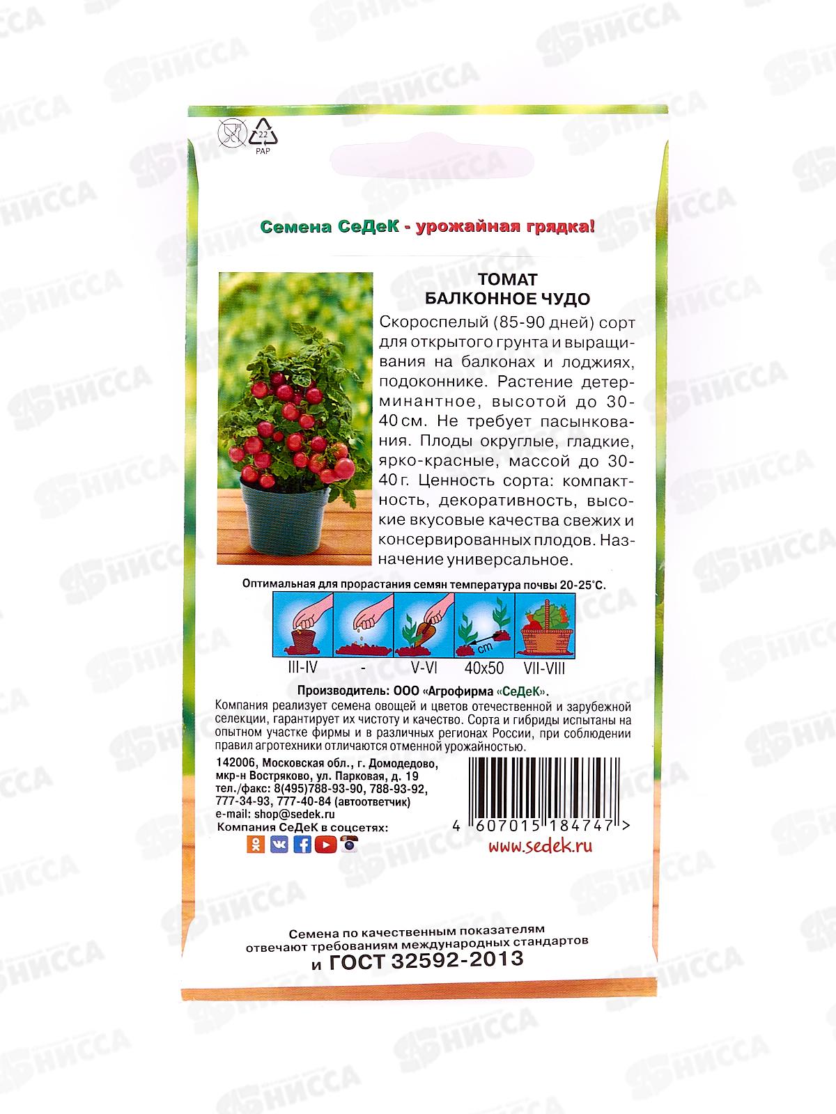 Томат Балконное Чудо закрытый грунт (Евро , 0,1, ) СеДек